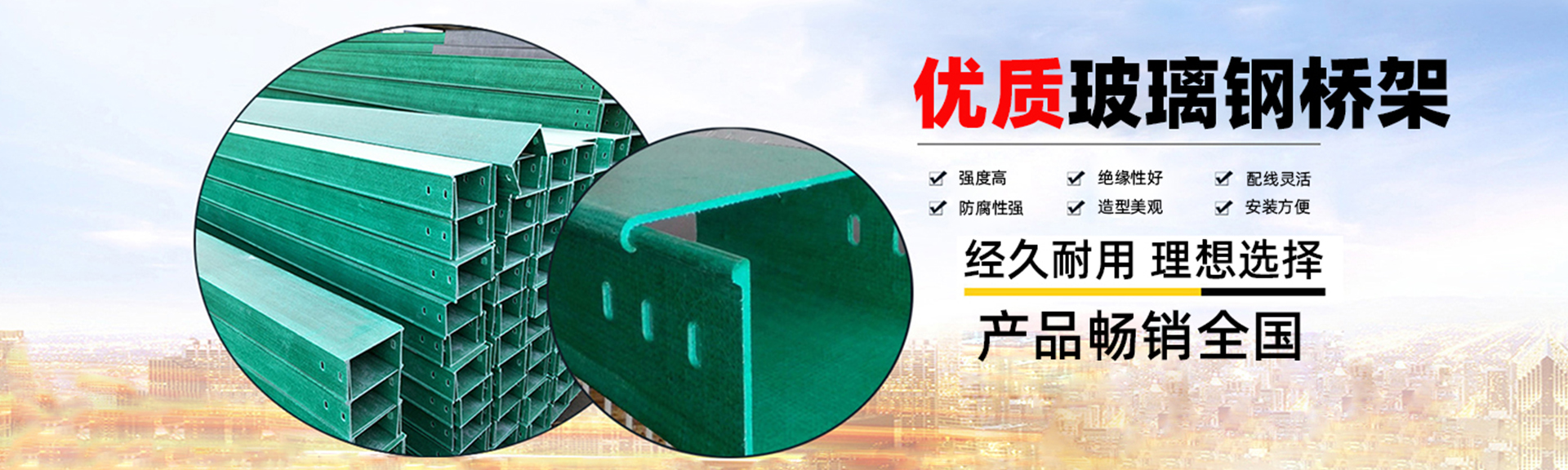 河北六強環保科技有限公司,成立于2009年4月14日,公司坐落于河北衡水棗強縣玻璃鋼高新技術工業園,是一家集設計、開發、生產、銷售為一體的實體廠家。主要產品有:玻璃鋼橋架、玻璃鋼線槽、玻璃鋼電纜槽、玻璃鋼電纜槽盒等各種玻璃鋼拉擠型材。我公司生產能力、裝備水平、產品數量、設計標準均達到國內較高水平,產品通過ISO9001質量認證,形成了國內先進的玻璃鋼材料產品體系,合作伙伴遍布全國各地,產品得到用戶一致好評。本公司以“艱苦奮斗、誠信立足,創新致遠,以顧客為主體,依靠高科技創新、推出節能、環保精品,奉獻社會”為企業理念,讓用戶滿意。誠信人愿以先進的技術,優質的產品,合理的價格,完善的服務,竭誠與中